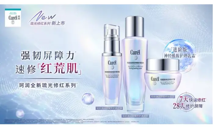 2025年10月,花王旗下专注干敏肌*3 护肤的品牌「Curél珂润」针对中国消费者特有的肌肤困扰“红荒肌*4 ”,全新推出中国本土研发生产的琉光*1 修红*2 系列产品——『珂润轻龄弹润舒缓修护乳霜』、『珂润轻龄弹润舒缓修护柔肤水』,与2024年2月上市的『珂润轻龄弹润舒缓修护精华露』共同构成更完整的「珂润」产品矩阵。琉光*1 修红*2 系列以“强韧屏障力,速修红荒肌*4 ”为核心,通过花王特有的神经酰胺护理*5 技术帮助增强肌肤屏障力,精准缓解干燥性敏感肌人群“干、红、纹”三大困扰,提供从补水、舒缓、修红*2 到抗初皱的链路护肤新方案。依托消费者肌肤改善的真实口碑,「珂润」将持续扩大在中国市场的影响力。
