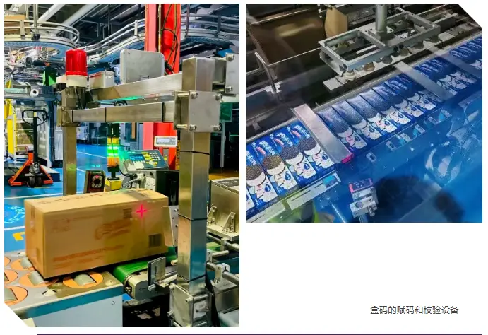 “一物一码” 项目通过对工厂生产线的硬件设备更新改造和软件系统的整合升级,项目旨在让每件亿滋产品的包装盒内和盒外都有一个独特的二维码,而盒子上的二维码又与产品所在的外箱上的二维码构成数据关联。